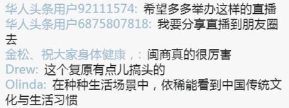 截止到5月6日12点,第二期直播观看总人数为330983人次。直播间里,小伙伴们纷纷留言。有人因为这次活动更加了解华侨华人这个群体,认可他们的拼搏与奋斗,牵挂着海外侨胞是否安好。
