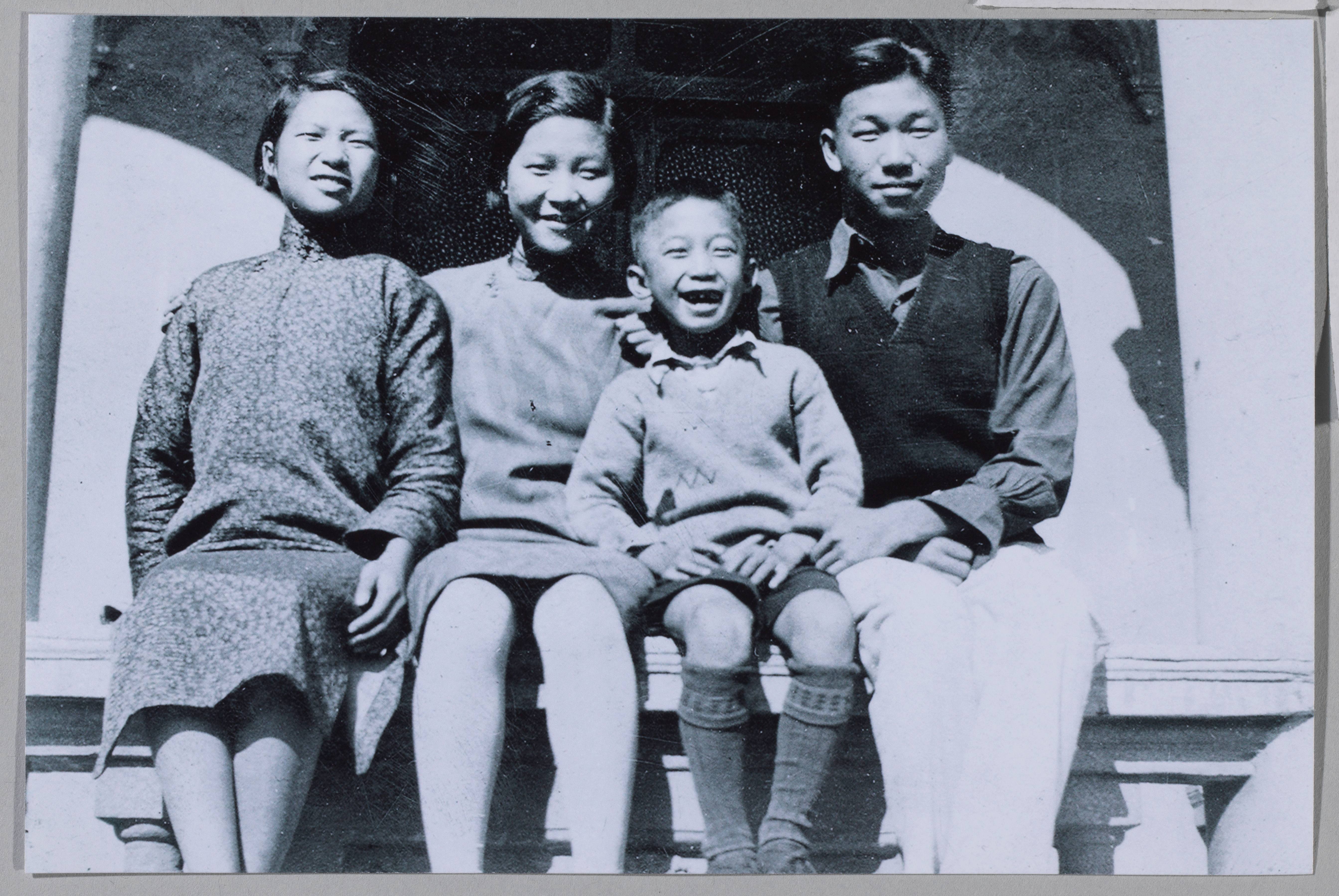 梁思礼在天津“饮冰室”前与五哥梁思达、五姐梁思懿、六姐梁思宁的合影照片