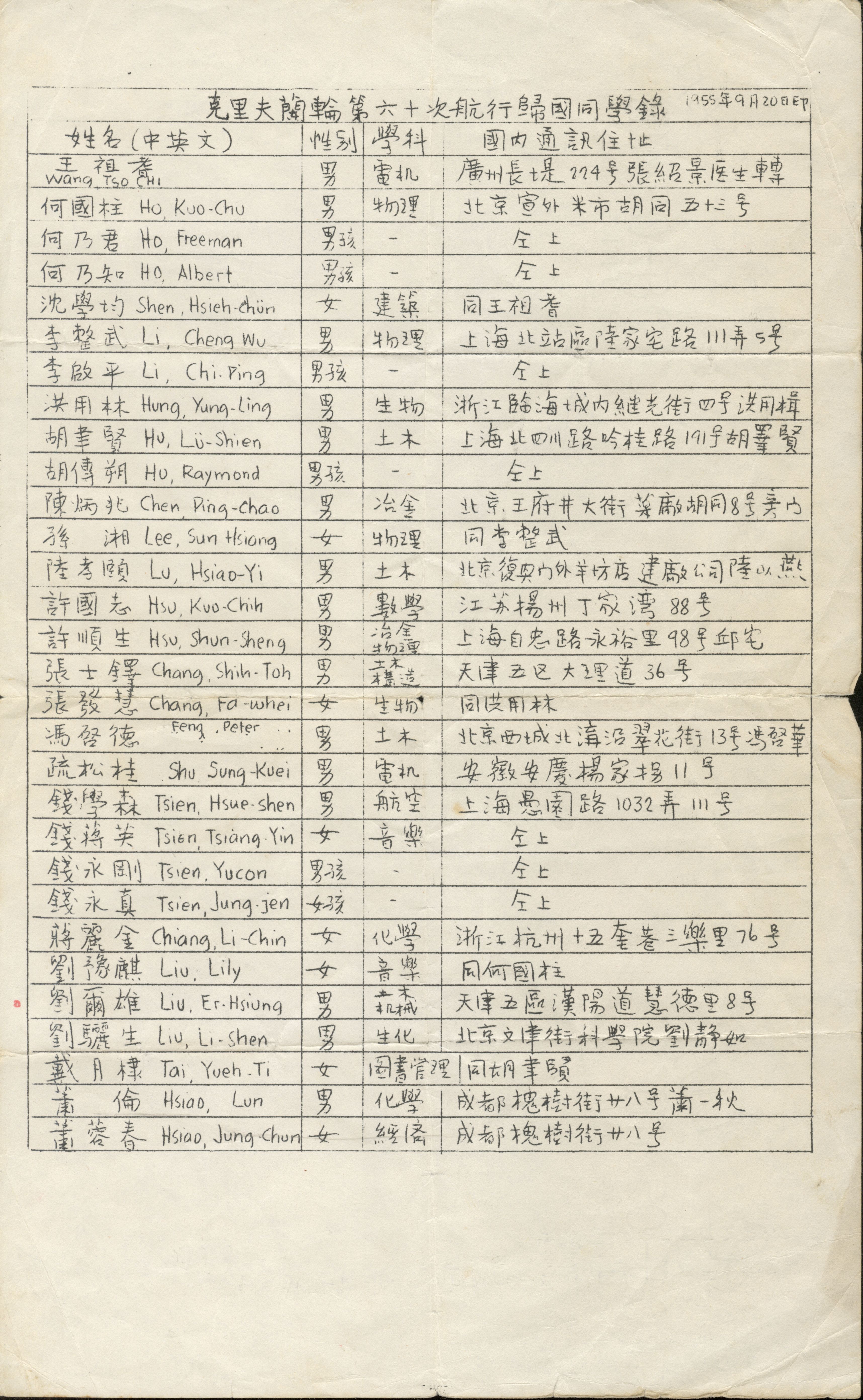 梁思礼捐赠 中国华侨历史博物馆藏 ![]() 克里夫兰轮第六十次航行归国同学录 1955年 二级文物 梁思礼捐赠 中国华侨历史博物馆藏 ![]() ![]()