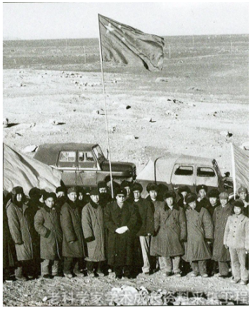 1966年,聂荣臻在戈壁上与参加导弹核武器试验的科技人员们在一起。梁思礼(前排左二)